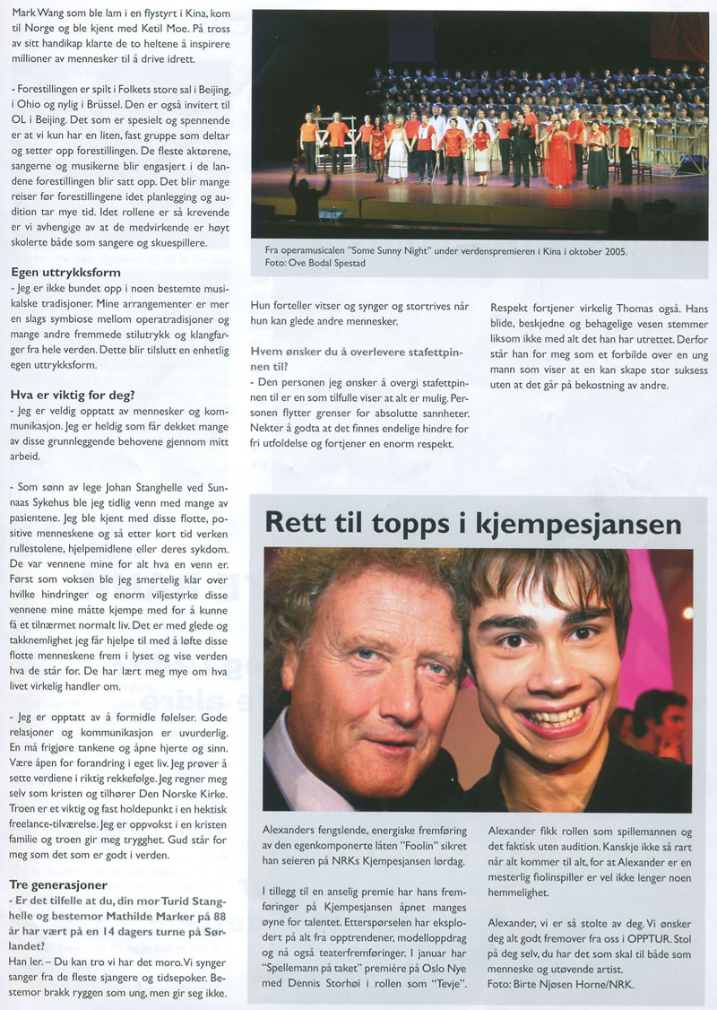The collaboration with Thomas Stranghelle as well as the participation in "Idol" a few years ago were signs for that. But it was a well kept secret to the most of us, that he has also written good and swingin' songs. In "Kjempesjansen" he appeared to be greatly talented in both, and it will be exciting to follow his career. In any case, it is a good step made forward and the contest prize can be used for further studies and improving. But performance requests will surely be pouring in: we can expereince him already in Spring as the Fiddler in the theater show "Fiddler on the Roof" in Oslo Nye Teater. Congratulations!